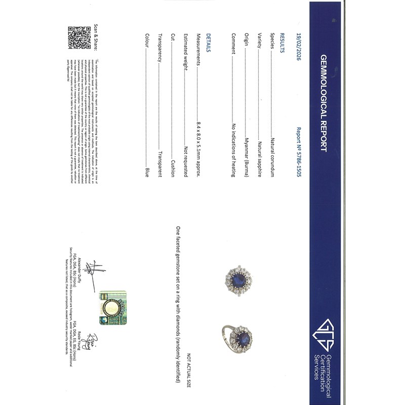 Accompanied by report number 5786-1505 dated 19th February 2025 from GCS stating that the sapphire shows no indications of heating, origin: Burma
