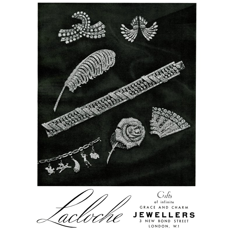C.f. a pair of closely comparable earrings can be seen in a Lacloche advertisement in an edition of The Tatler dated 9th December 1936