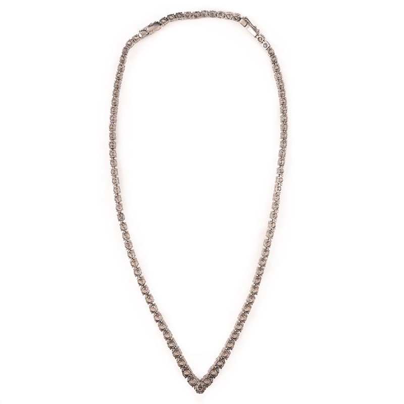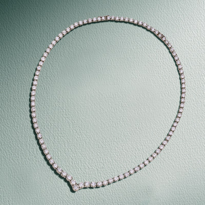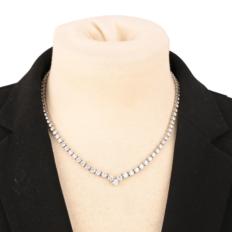 A DIAMOND RIVIÈRE NECKLACE, composed of a row of graduated round brilliant-cut diamonds, in platinum, total diamond weight approximately 18.00cts, with a detachable section, shorter length 37.5cm, full length 42.5cm