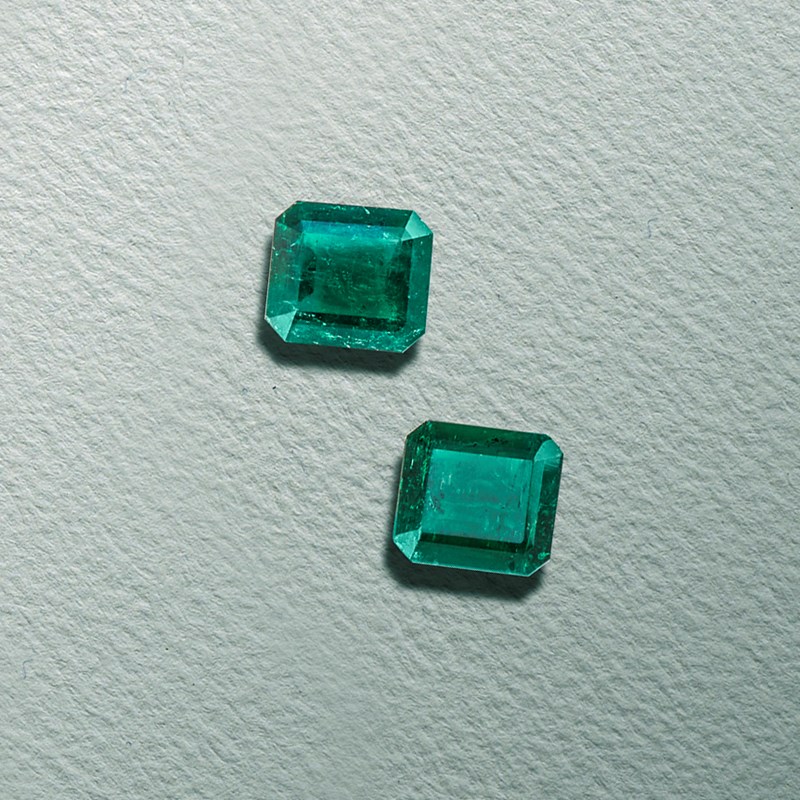 † A PAIR OF LOOSE EMERALD-CUT EMERALDS, 7.90CTS AND 7.83CTS