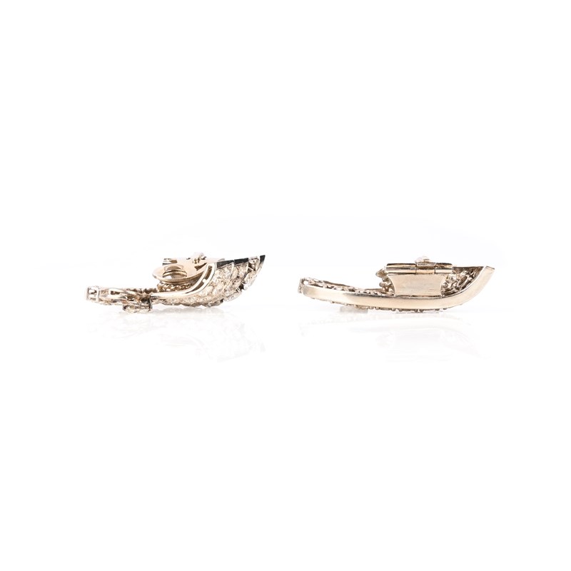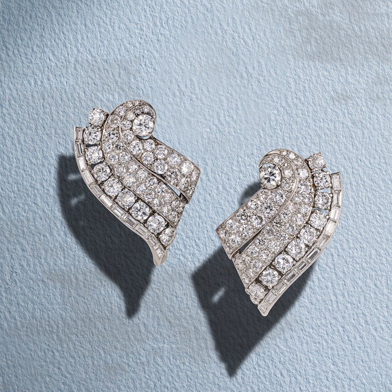A PAIR OF ART DECO DIAMOND SCROLL EARRINGS