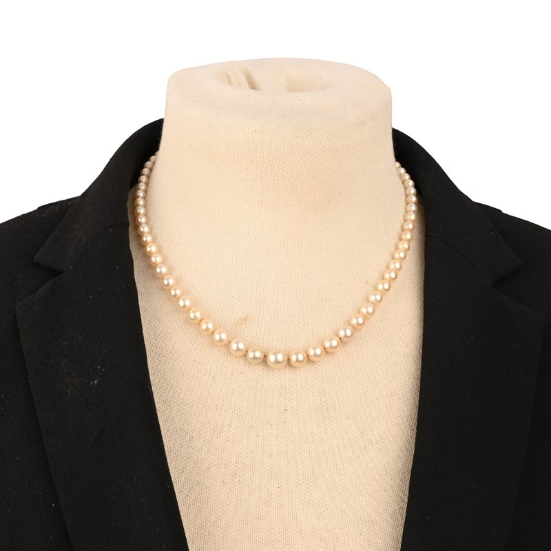 A SINGLE ROW NATURAL PEARL NECKLACE
