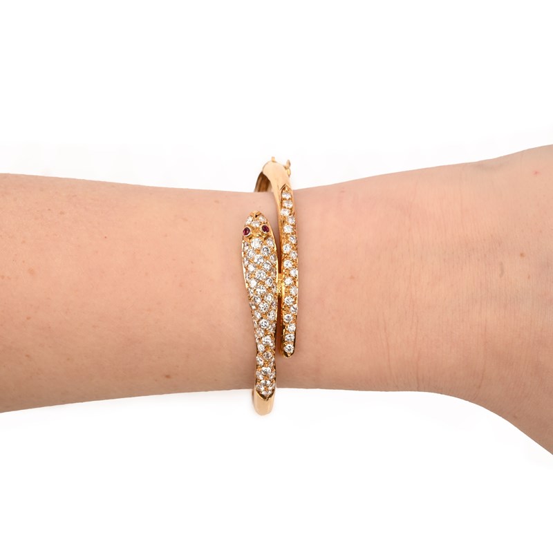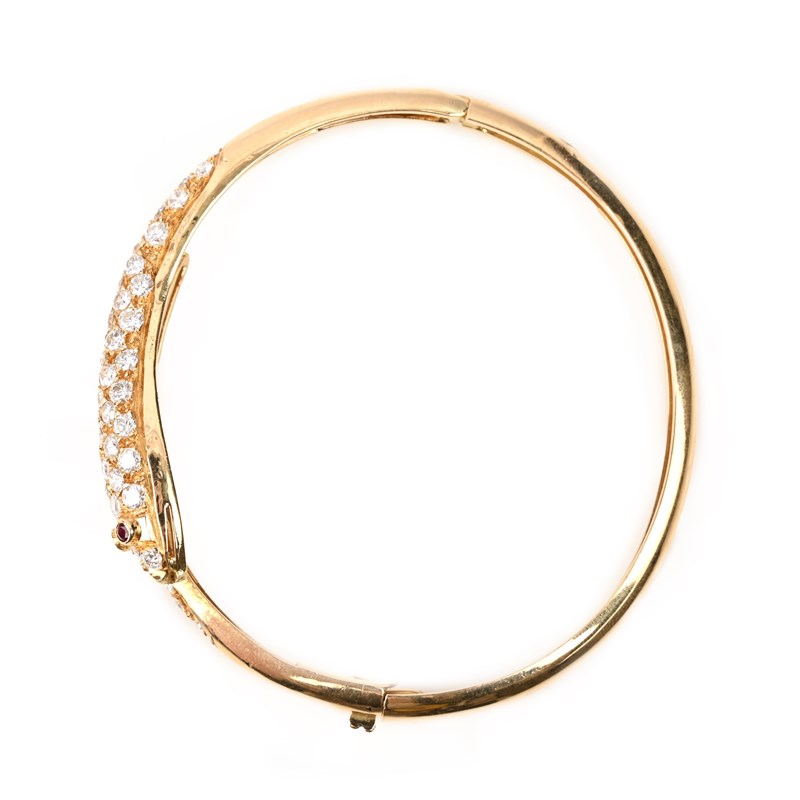 A DIAMOND-SET GOLD SNAKE BANGLE