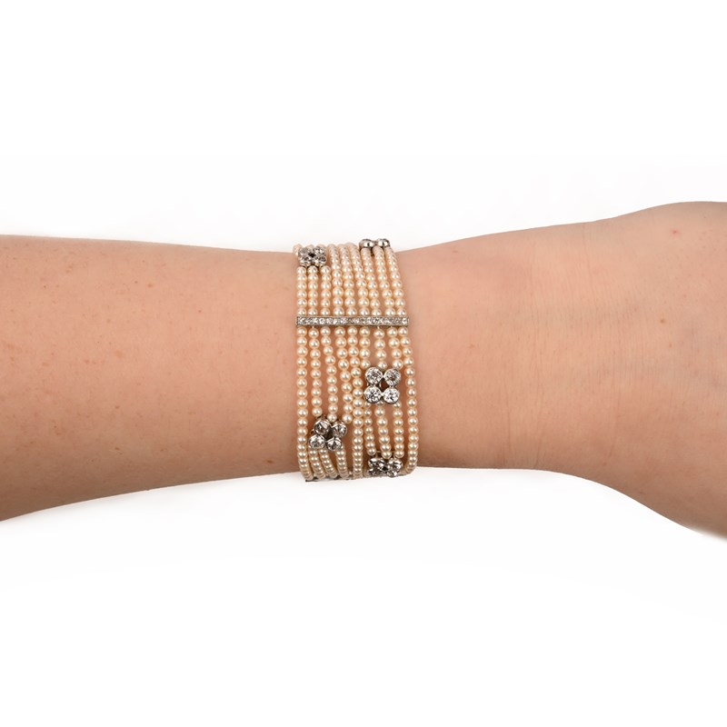 A SEED PEARL AND DIAMOND BRACELET