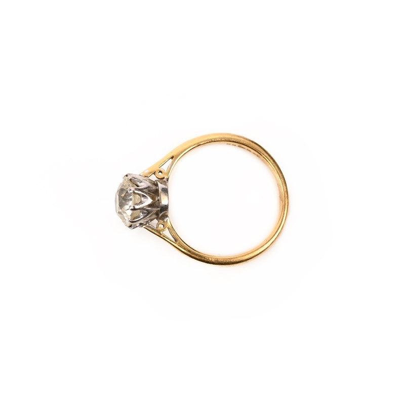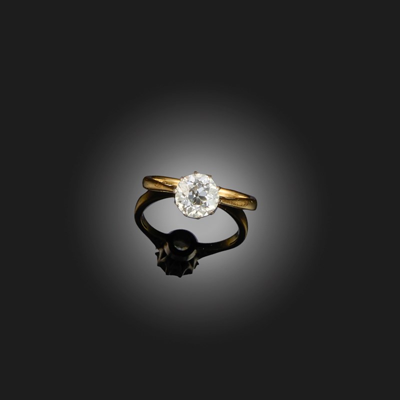 A DIAMOND SOLITAIRE RING, set with an old European-cut diamond weighing approximately 1.30cts, in 18ct yellow gold, with maker's mark E F and London hallmarks for 1997, size L