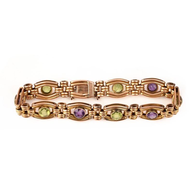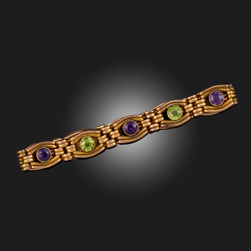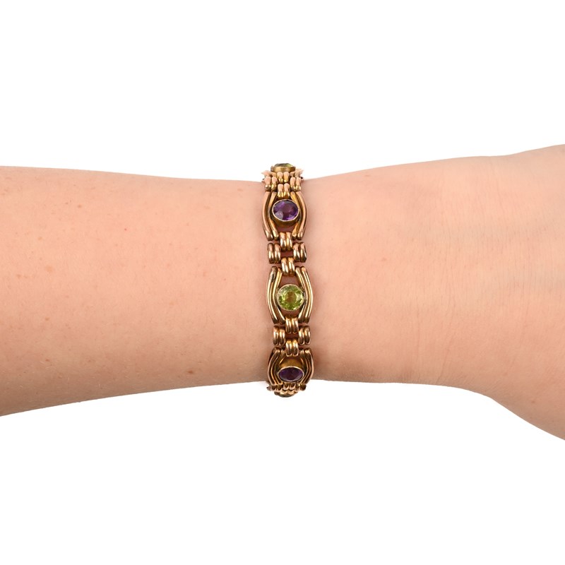 AN AMETHYST AND PERIDOT BRACELET, stamped 15, 22g