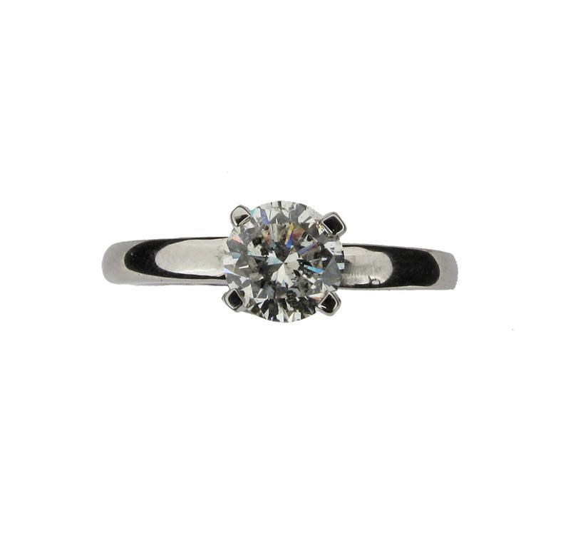 A diamond solitaire ring. The brilliant cut diamond is set in white gold. Size M 1/2.