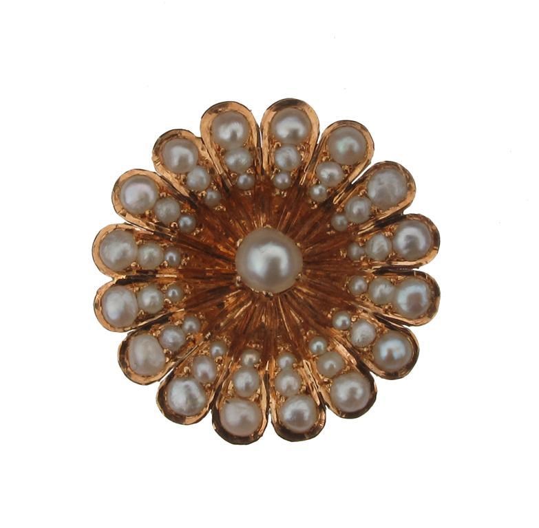 An Edwardian seed pearl mounted gold flower head brooch pendant.