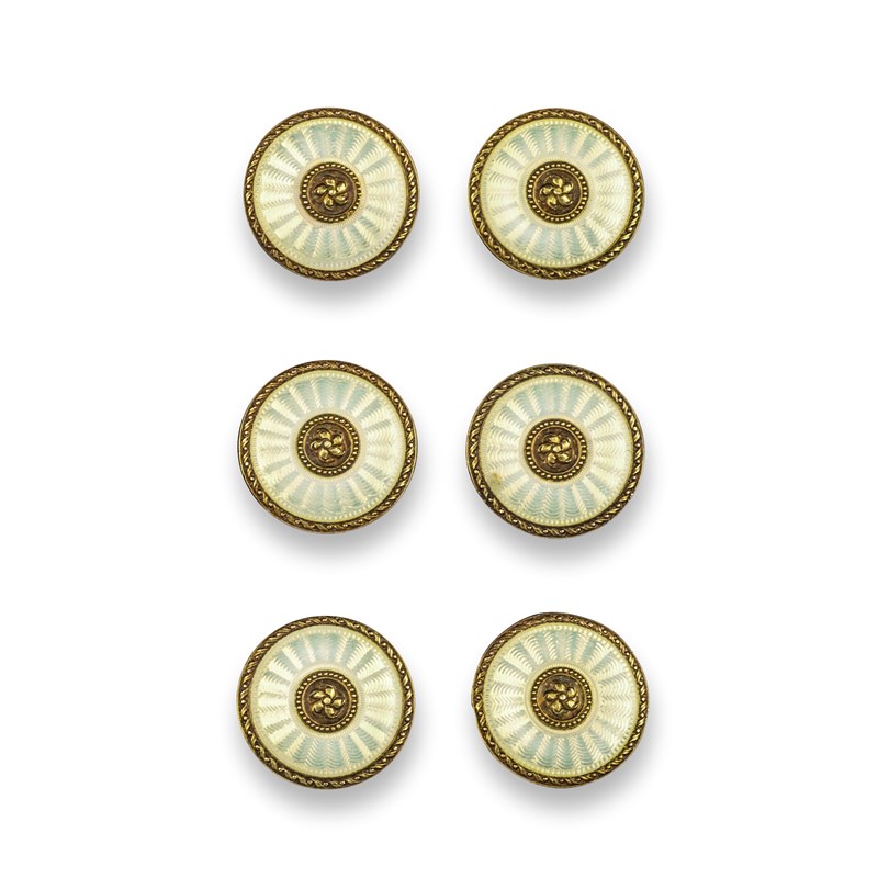 A set of six late 19th century French enamel gold buttons