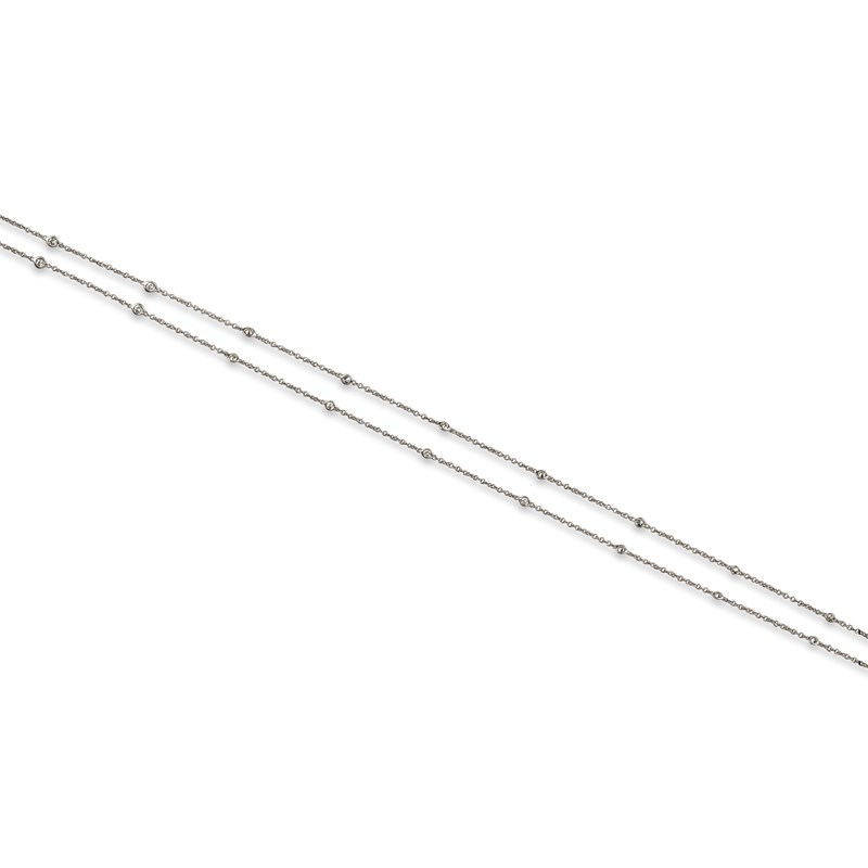A diamond-set fine-link platinum chain, set with 22 round brilliant-cut diamonds in spectacle mounts, 65cm long