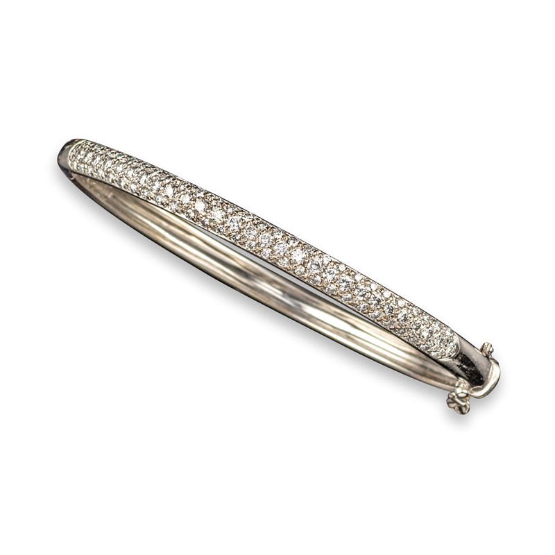 A diamond-set white gold bangle, the upper section pave-set with circular-cut diamonds, 6cm internal diameter