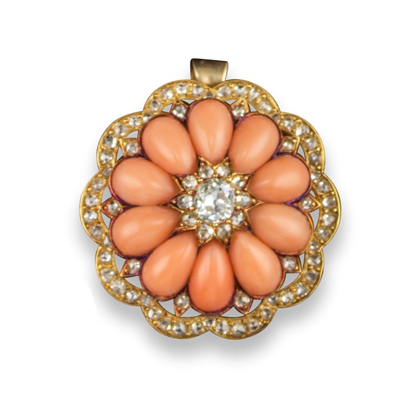 ‡ A Victorian coral and diamond locket pendant