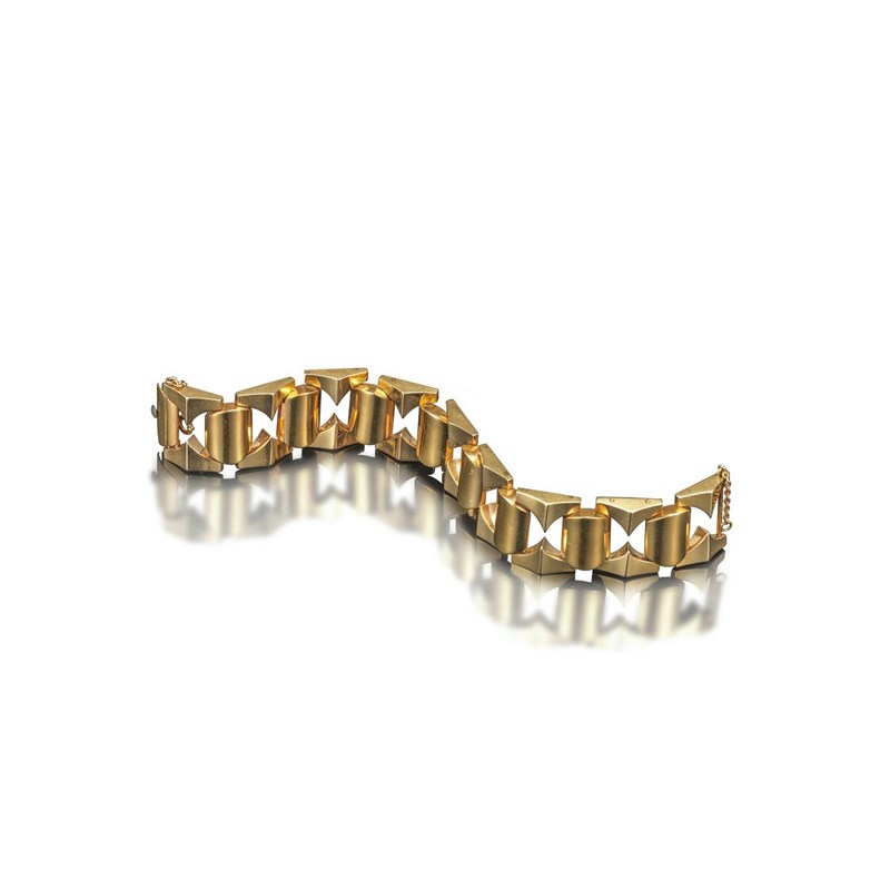 A fancy link gold bracelet C1940, of geometric design. 19cm long. 50g.