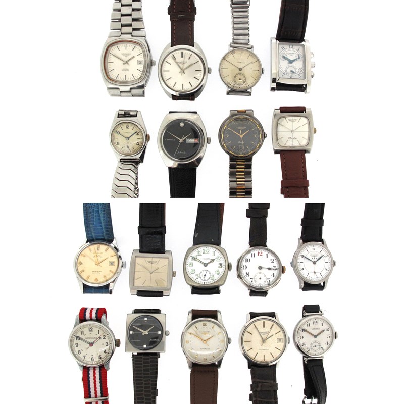 A collection of eighteen steel wristwatches by Longines, quartz, automatic and manual movements, on steel leather or fabric bands