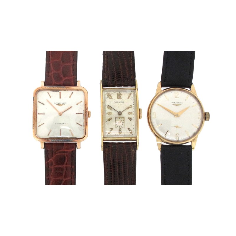 Three gold wristwatches by Longines