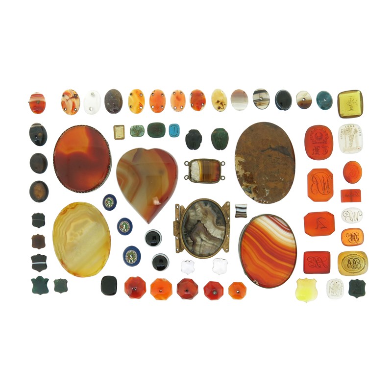 A collection of assorted hardstone mounts and seventeen carved hardstone intaglios