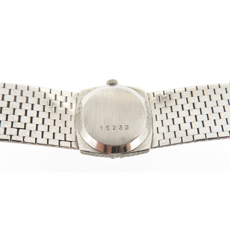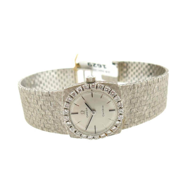 A lady's diamond-set Omega wristwatch, the signed dial with baton numerals, circular-cut diamonds to the bezel on 18ct white gold brick-link band, 2.2cm wide (including winder) 17cm long, case