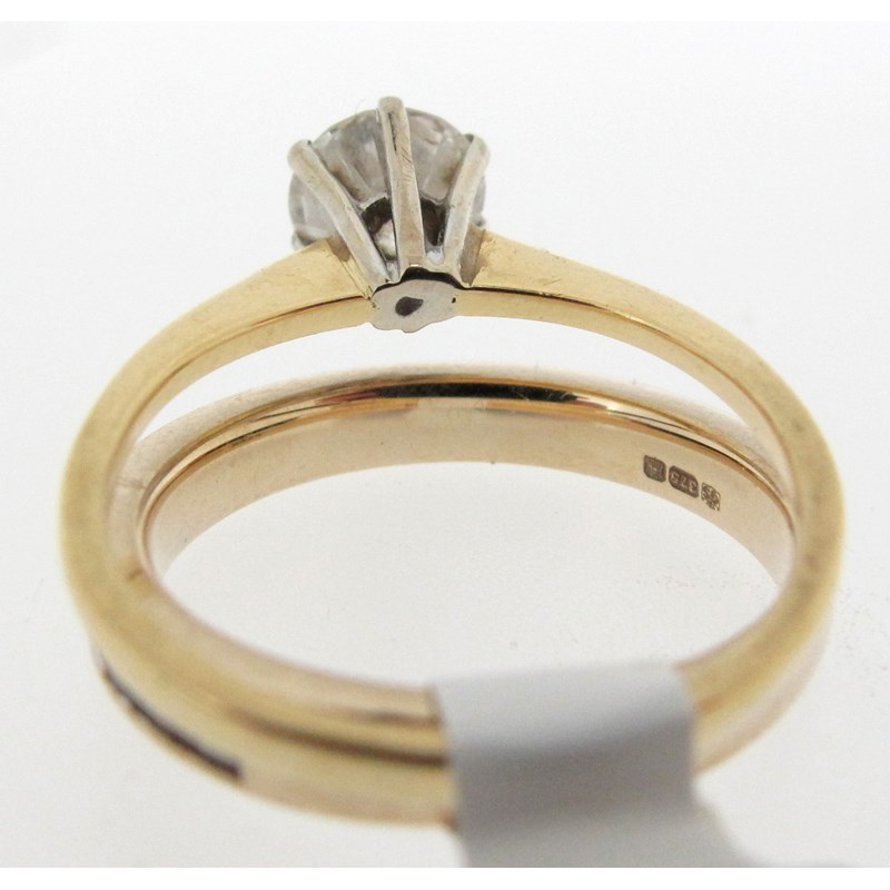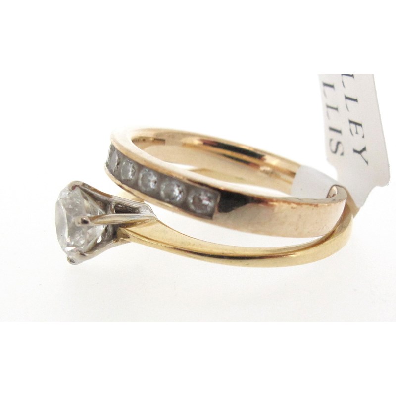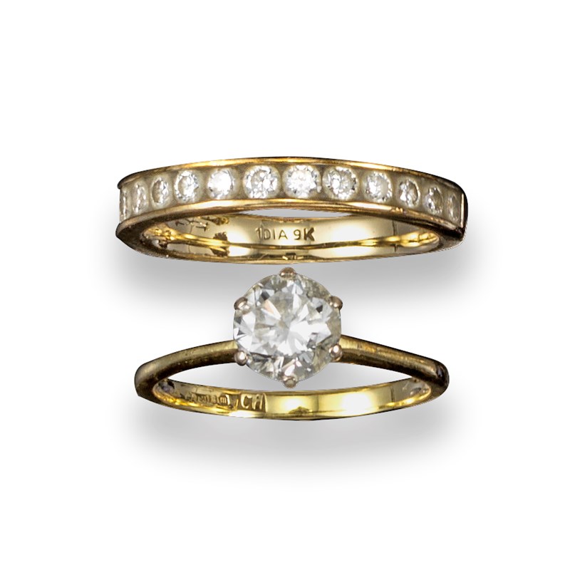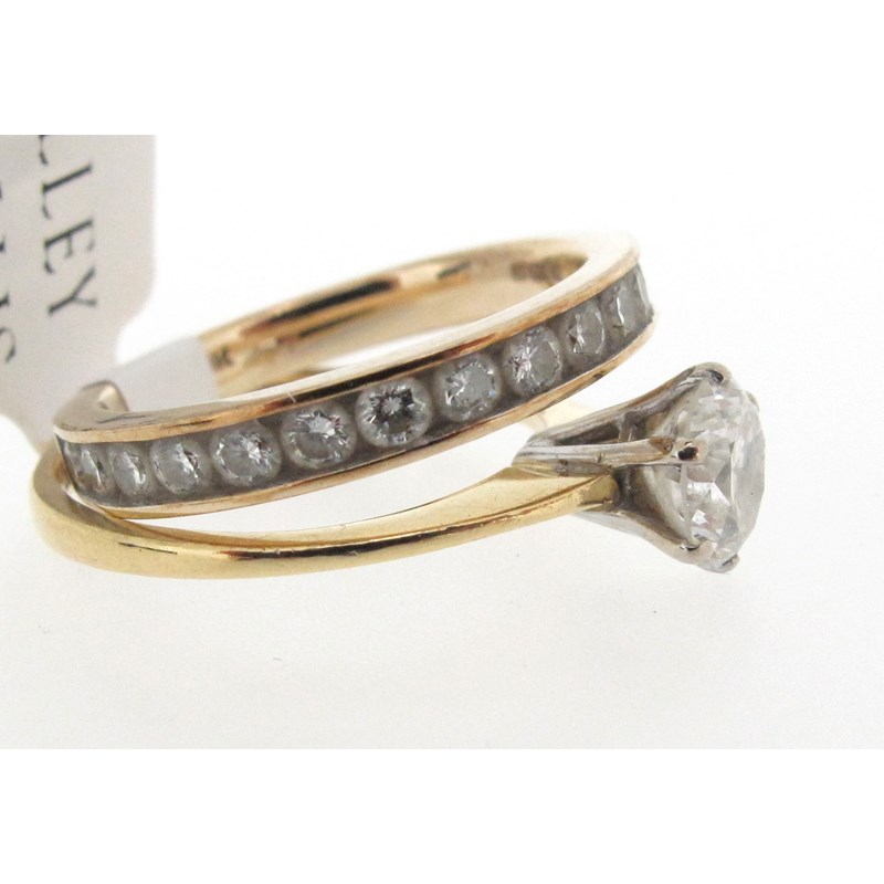 A diamond solitaire ring, the round brilliant-cut diamond weighs approximately 0.70cts, set in platinum and yellow gold, size K, with a diamond half hoop ring, the circular-cut diamonds channel-set in yellow gold, size J 1/2