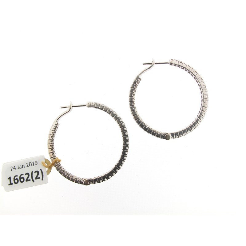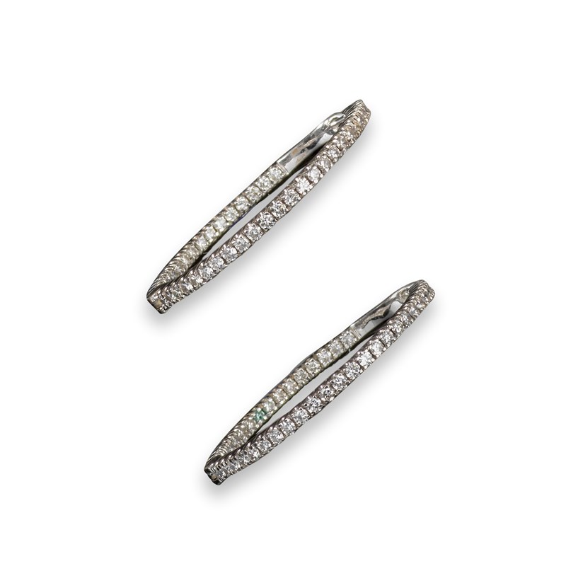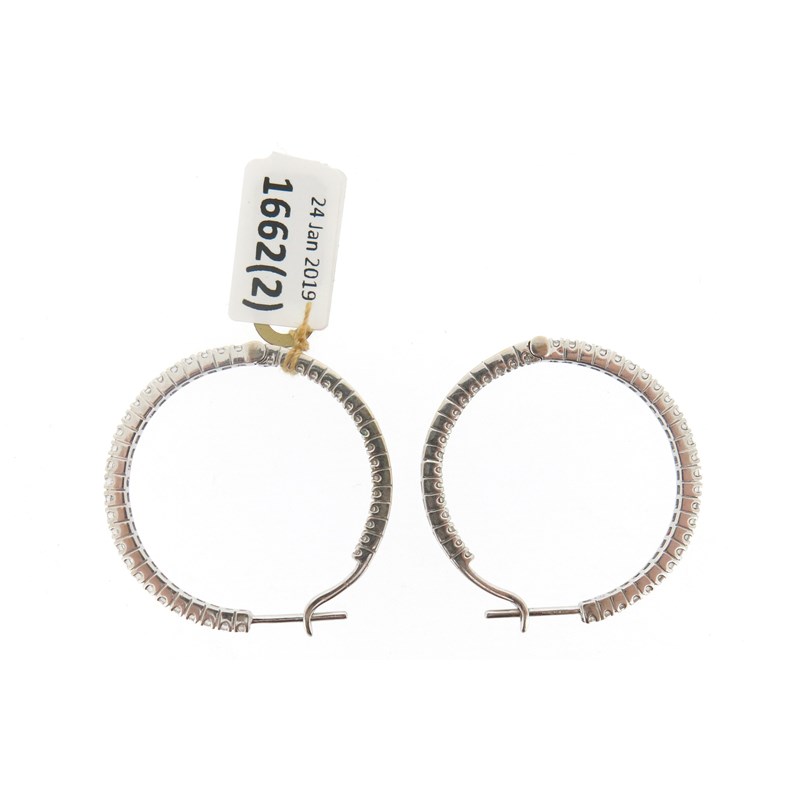 A pair of diamond hoop earrings, set with circular-cut diamonds in white gold, 2.2cm inner diameter