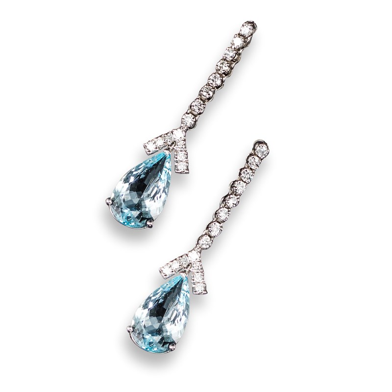 A pair of aquamarine and diamond drop earrings