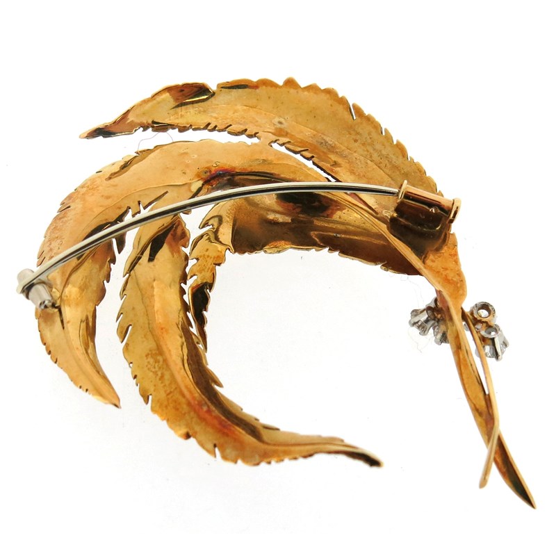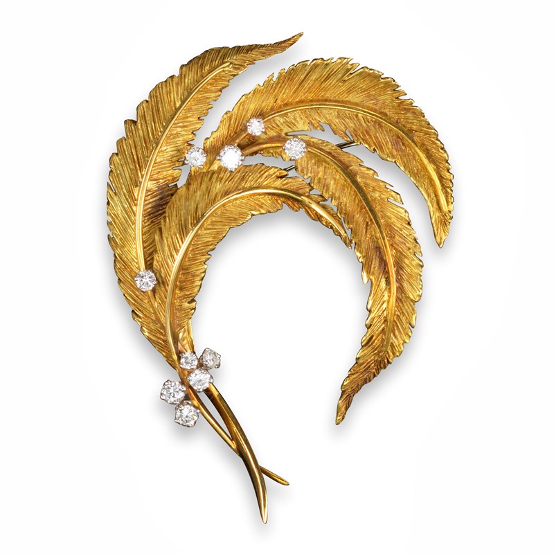 A gold and diamond-set feather brooch by Cartier