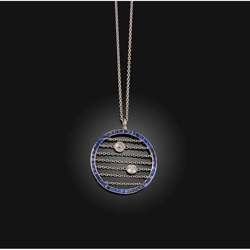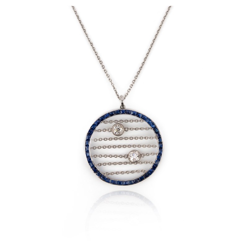 Cartier, a sapphire and diamond pendant, early 20th century composite, the pendant of circular