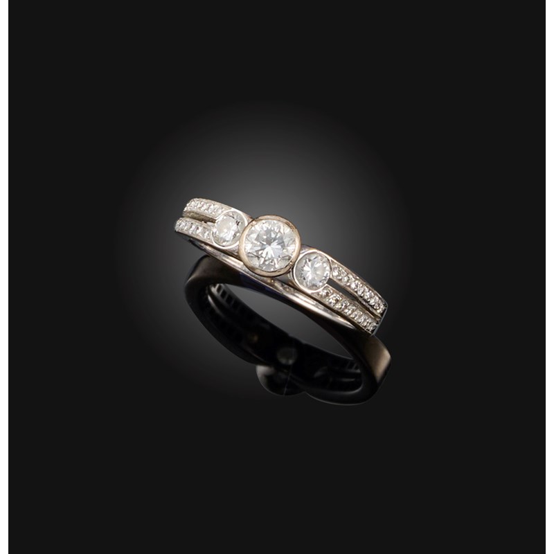 A diamond ring, centring on a collet-set brilliant-cut diamond weighing approximately 0.35 carats,