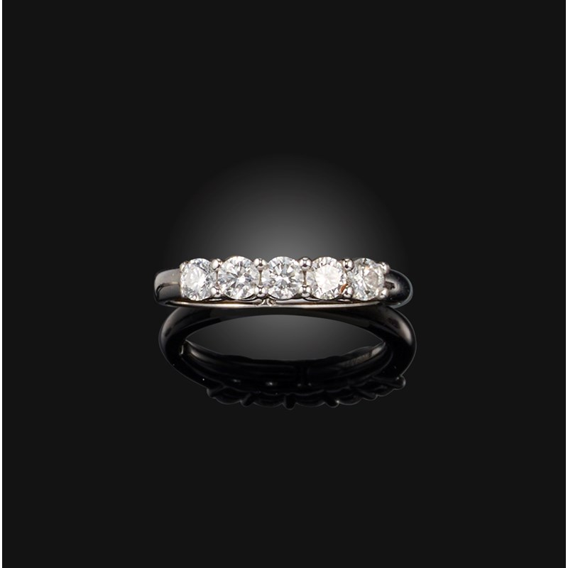 A five-stone diamond ring, set with a sequence of five brilliant-cut diamonds totalling 1.00 carat,