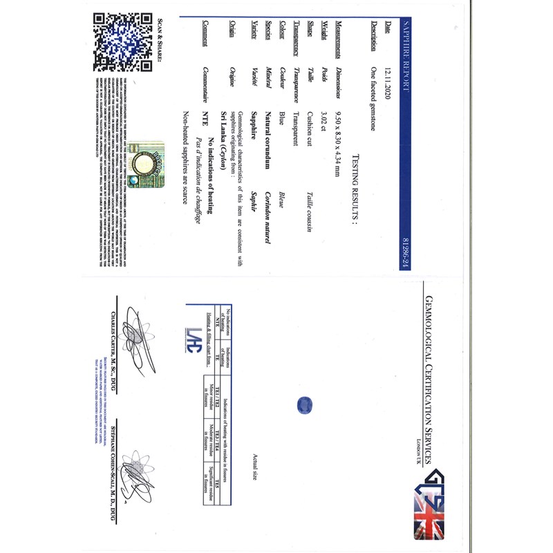 Accompanied by GCS report no. 81286-24, stating that the sapphire is of Sri Lankan (Ceylon) origin, with no indications of heat treatment