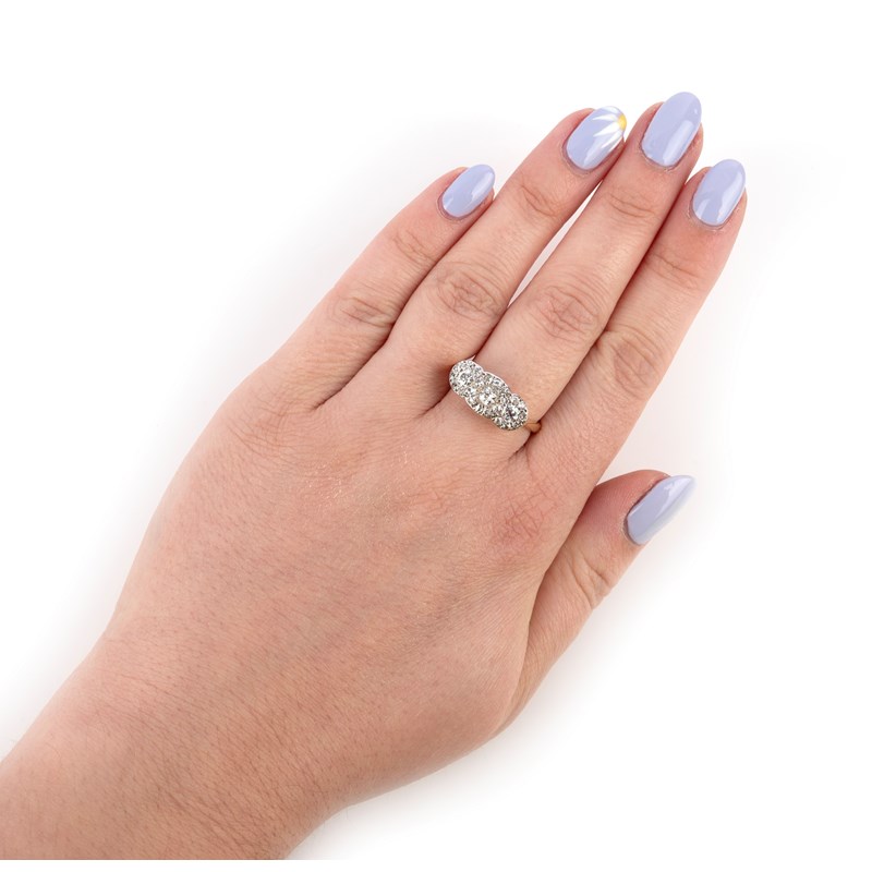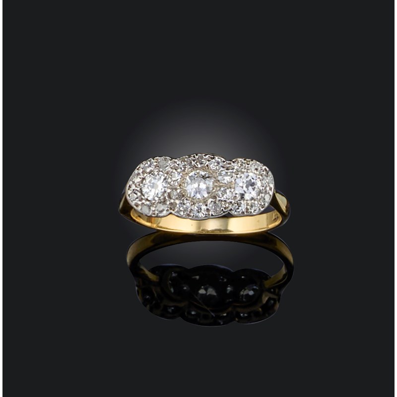 A diamond ring, early 20th century, designed as three conjoined clusters of circular- and single-cut