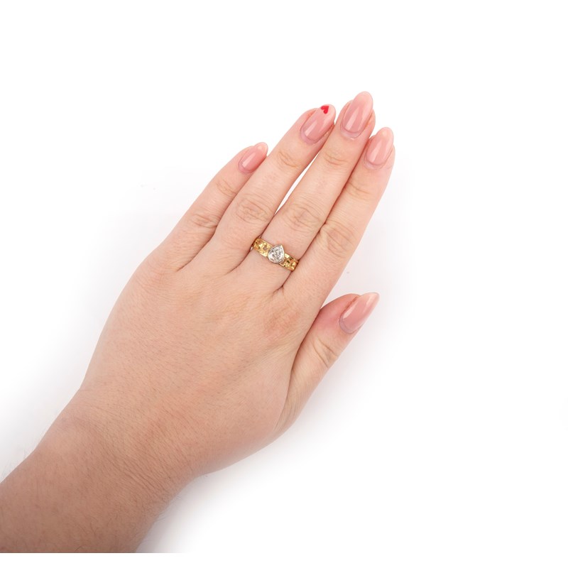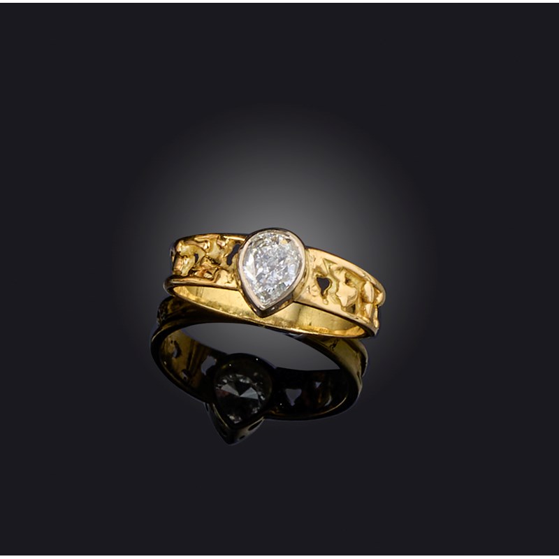 Φ John Donald, a diamond ring, collet-set with a pear-shaped diamond weighing approximately 0.50