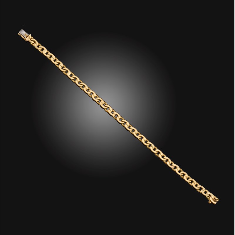 Van Cleef & Arpels, a gold bracelet, of flattened curb linking in gold, length 18.5cm, signed
