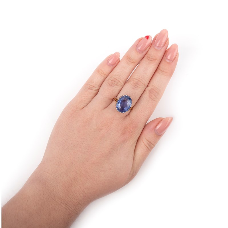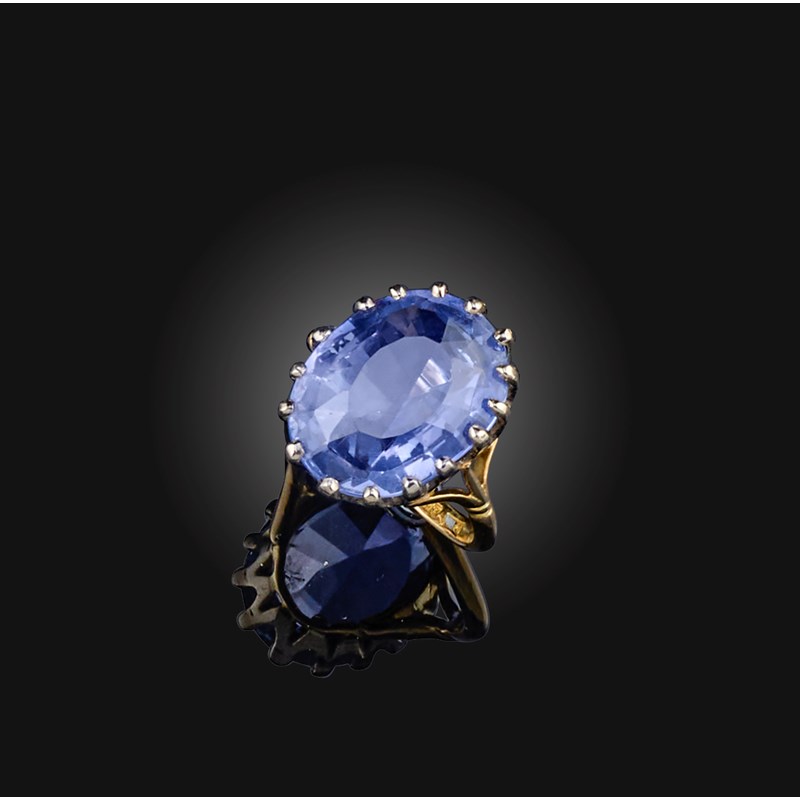 A sapphire solitaire ring, the oval-shaped sapphire weighing 11.83 cts, claw-set in platinum and gold, size N 1/2