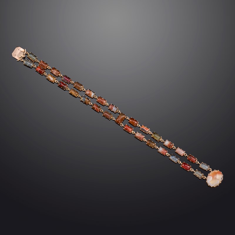 A George III agate bracelet, early 19th century, composed of two rows of rectangular sections of
