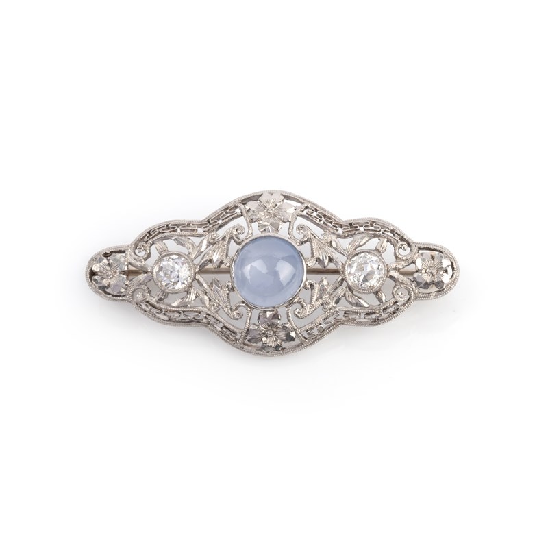 A star sapphire and diamond brooch, early 20th century, set with a cabochon star sapphire weighing