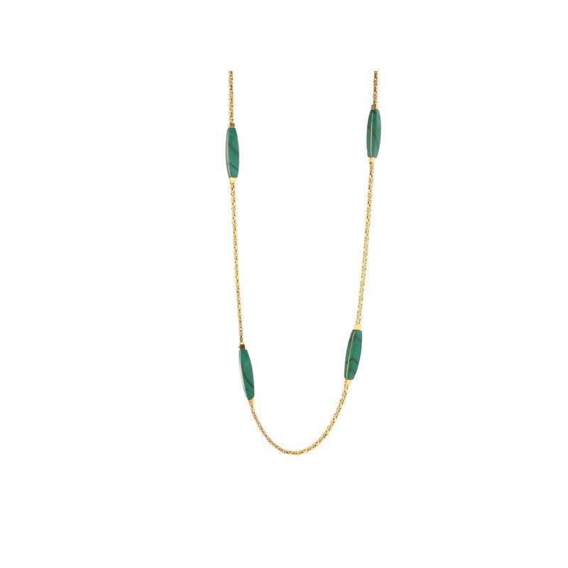 malachite lozenge-form links, clasp stamped 750 and Italian maker's mark 419 AL, possibly for Vendorafa, Valenza, 86cm, 51g