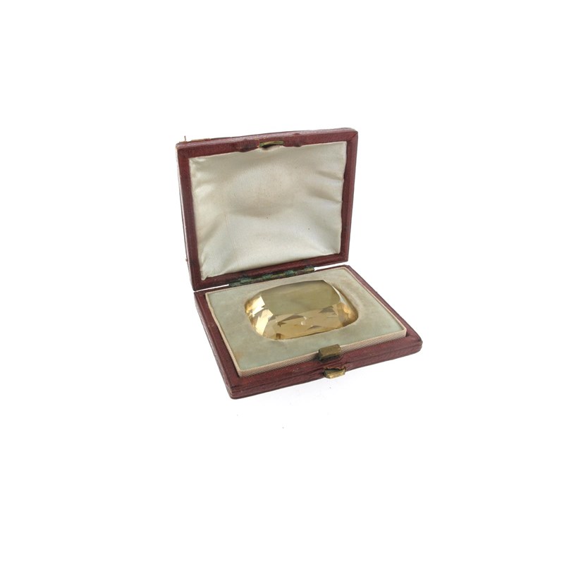 A cased specimen citrine weighing 43.79cts, in original fitted 19th century case