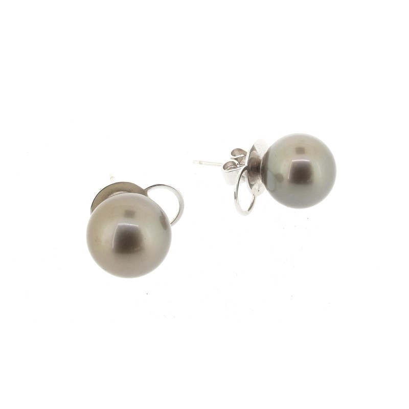 A pair of cultured pearl earrings, the brown cultured pearls each measure 12.6mm approximately, set on white gold post fittings