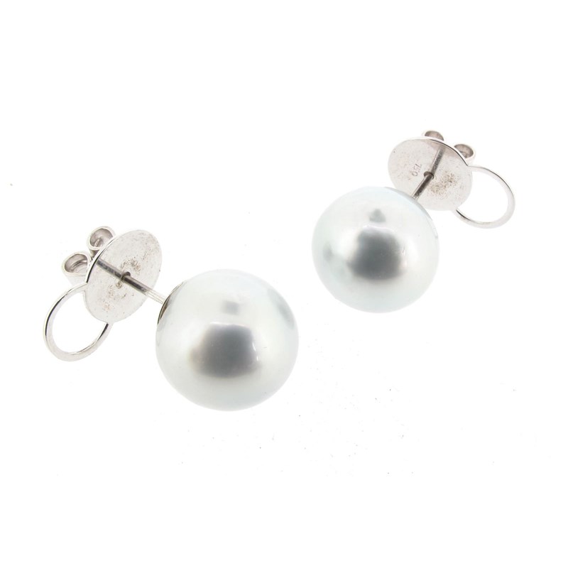 A pair of cultured pearl earrings, the grey cultured pearls each measure 12.5mm approximately and set on white gold post fittings