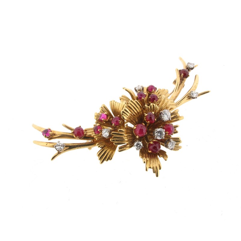 A ruby and diamond foliate brooch