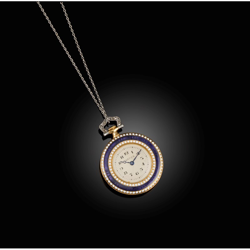 Cartier, a Belle Epoque enamel and diamond pendant watch, circa 1900