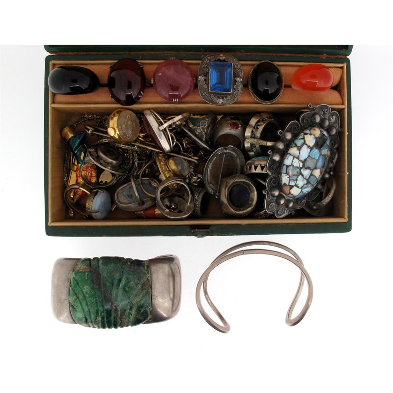 A small jewellery box containing various items of jewellery, costume jewellery etc, including a large quantity of stone set silver rings.