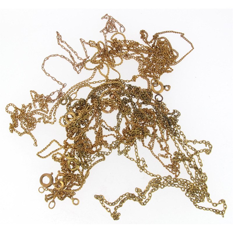 Assorted gold fine link neck chains. Approximately 16g in total.