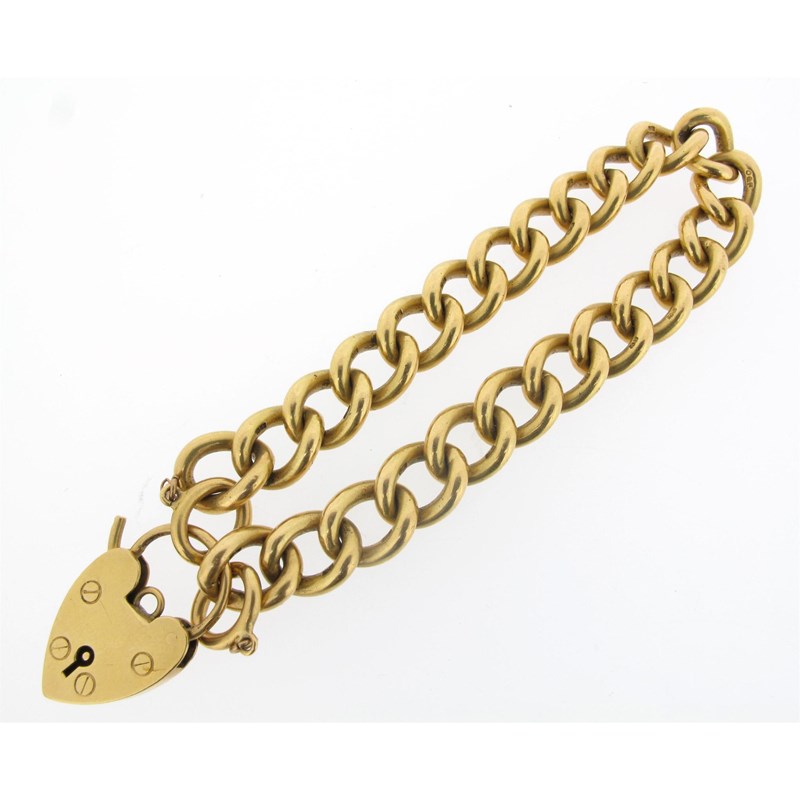 An 18ct yellow gold curb link bracelet, with 18ct yellow gold padlock clasp. 60g.