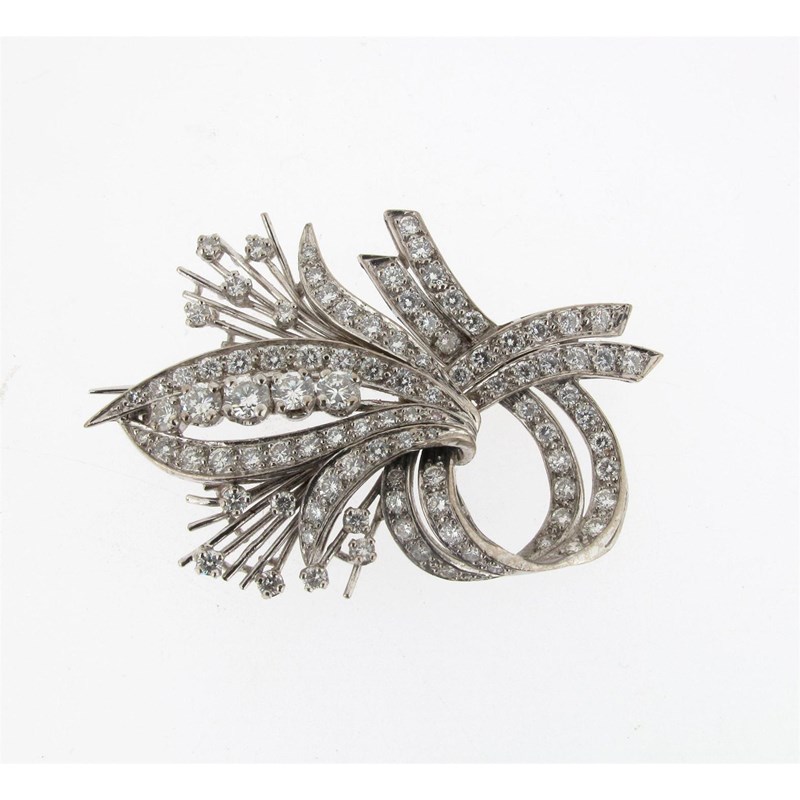 A diamond spray brooch, set overall with graduated circular cut diamonds in platinum. 5cm wide.