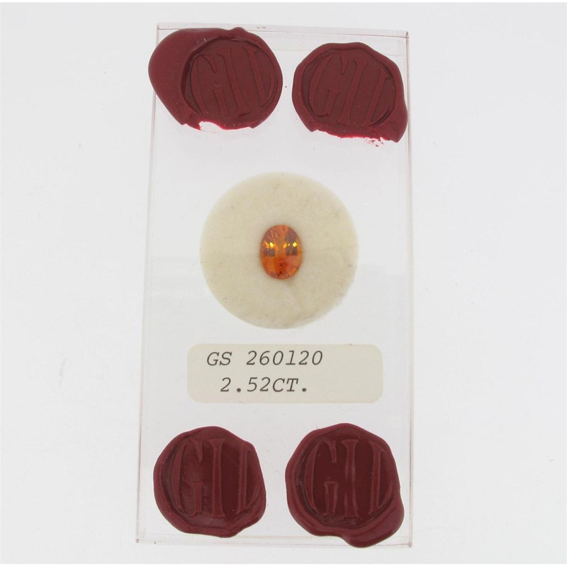 An unset oval shaped golden coloured stone, in a sealed contained and accompanied with a gemmological certificate stating that it is a sapphire and weighs 2.52cts. With an unset emerald cut emerald in a sealed container, accompanied with a gemmological certificate stating that the stone is an emerald and weighs 1.09cts.