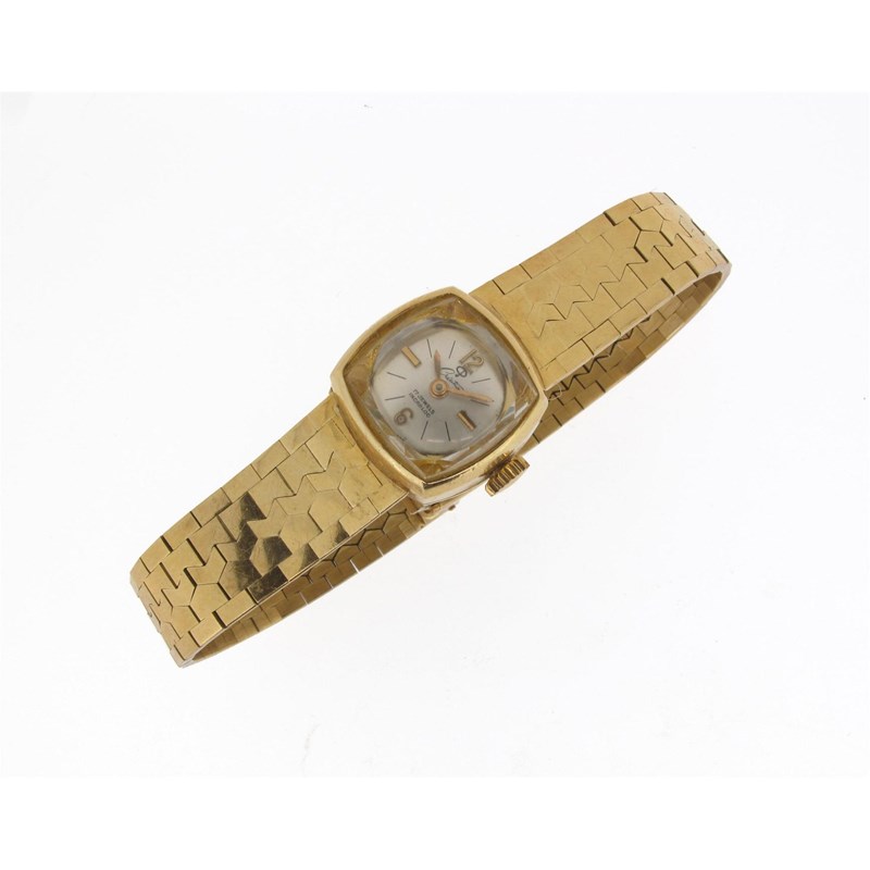 A lady's gold wristwatch with an integrated gold band