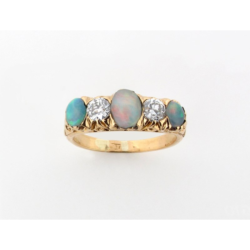 A diamond cluster ring set in gold, and three other gold rings set with coloured stones and diamonds.