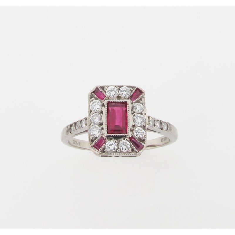 A pair of white gold earrings, invisibly set with square shaped diamonds. And a pair of yellow and white gold earrings each set with a circular cut diamond.