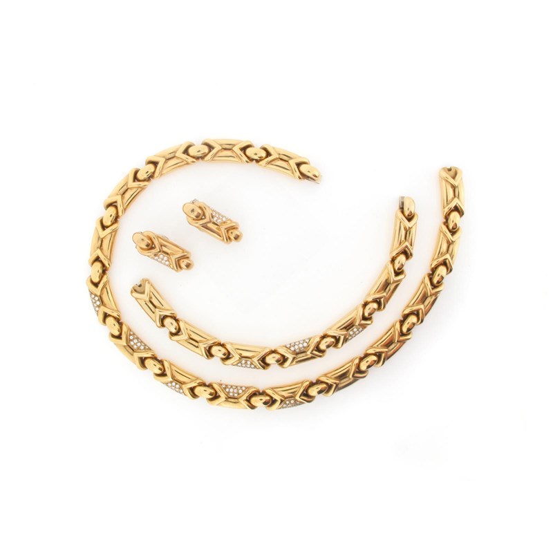 A yellow gold fancy rope link necklace, 40cm, 19cm.